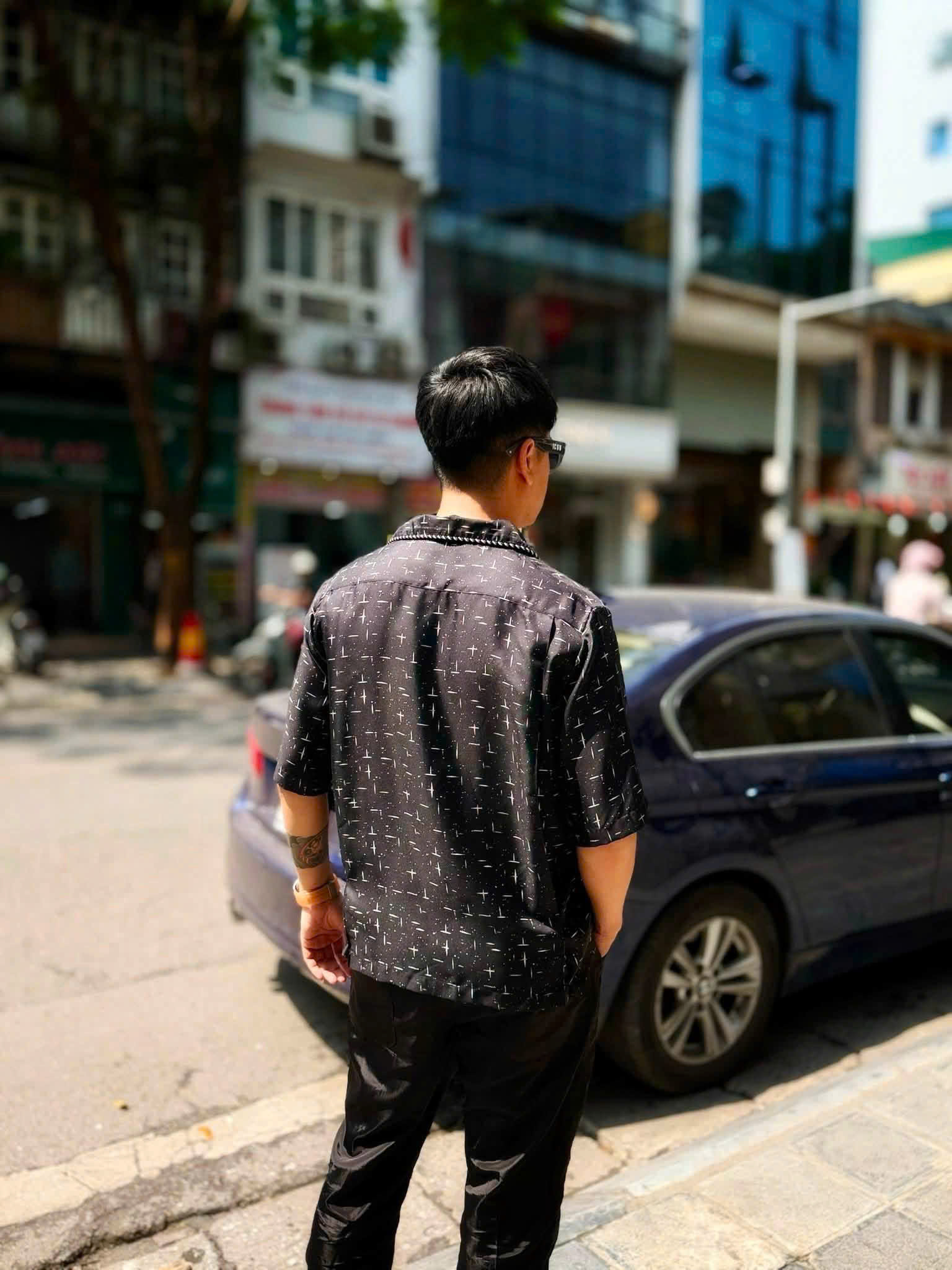 Amiri sơ mi lụa logo thêu đỉnh