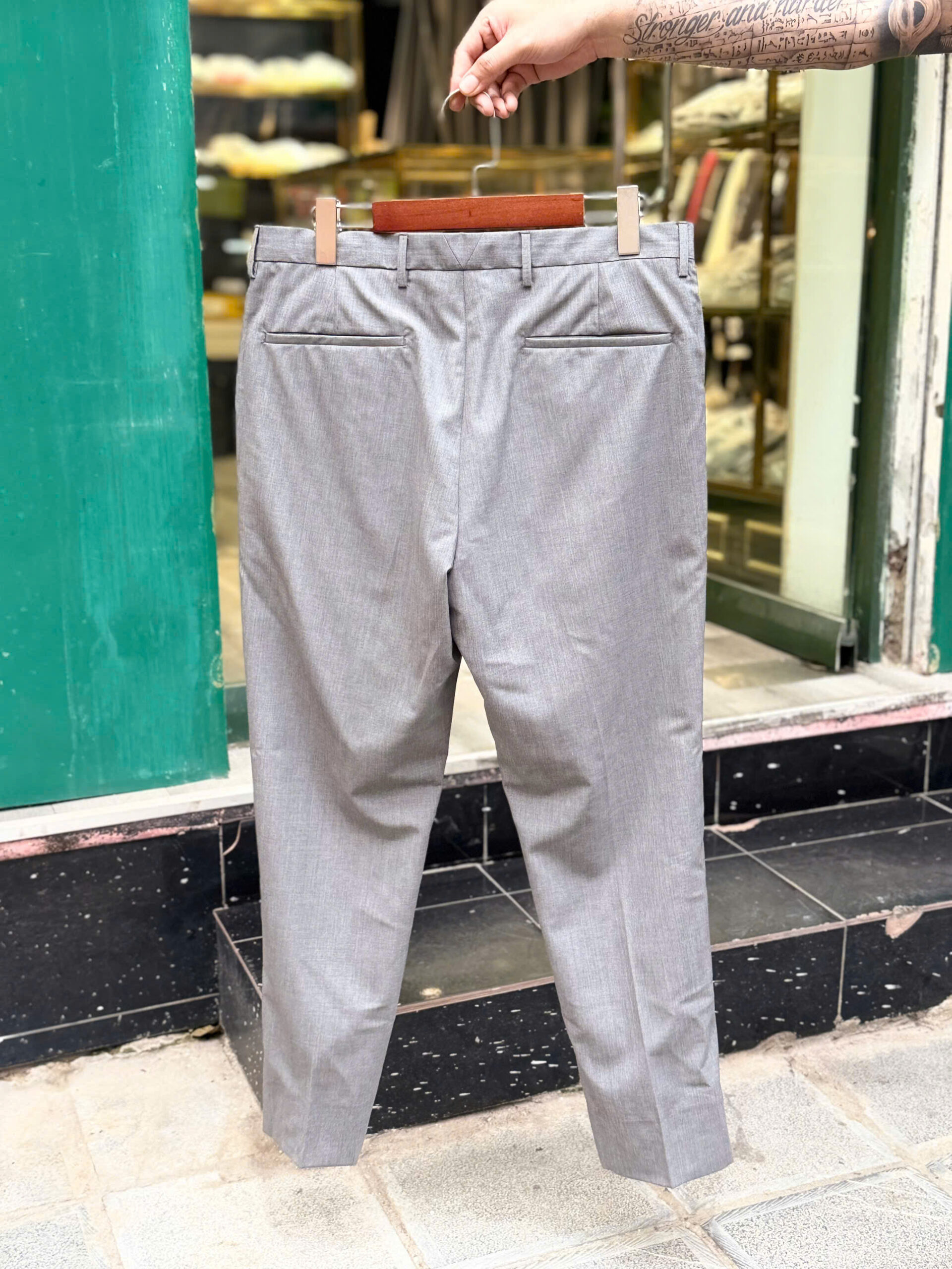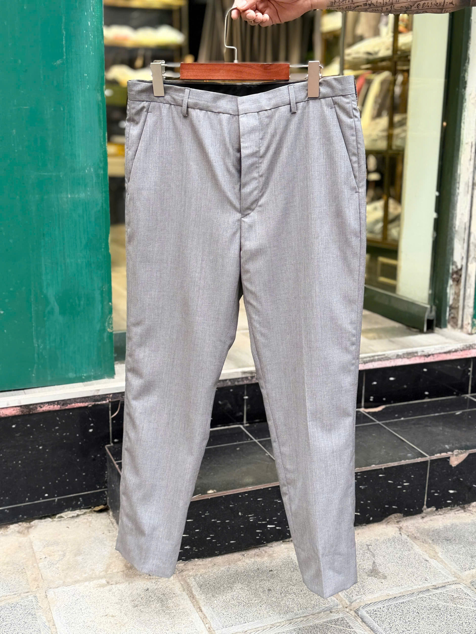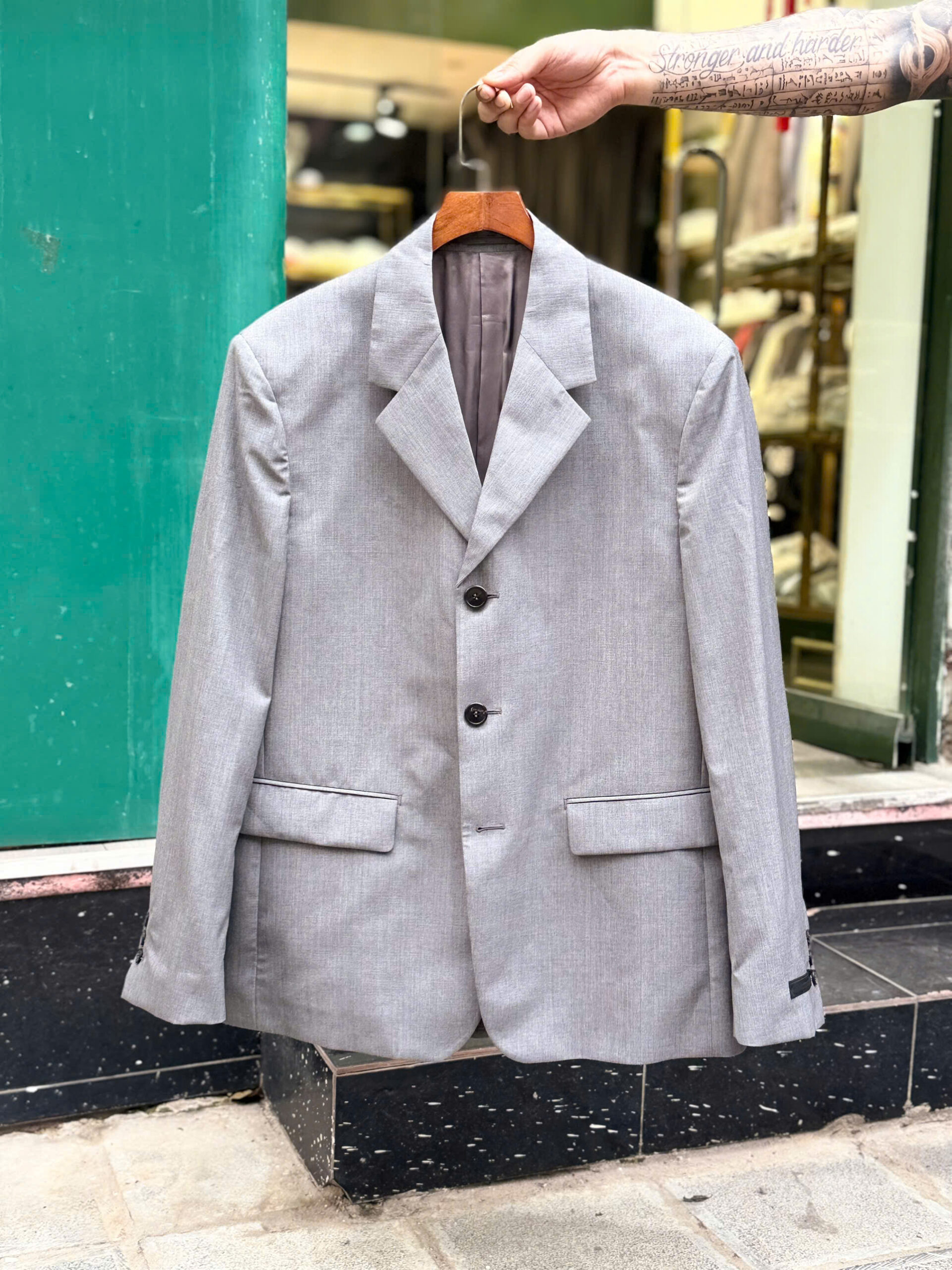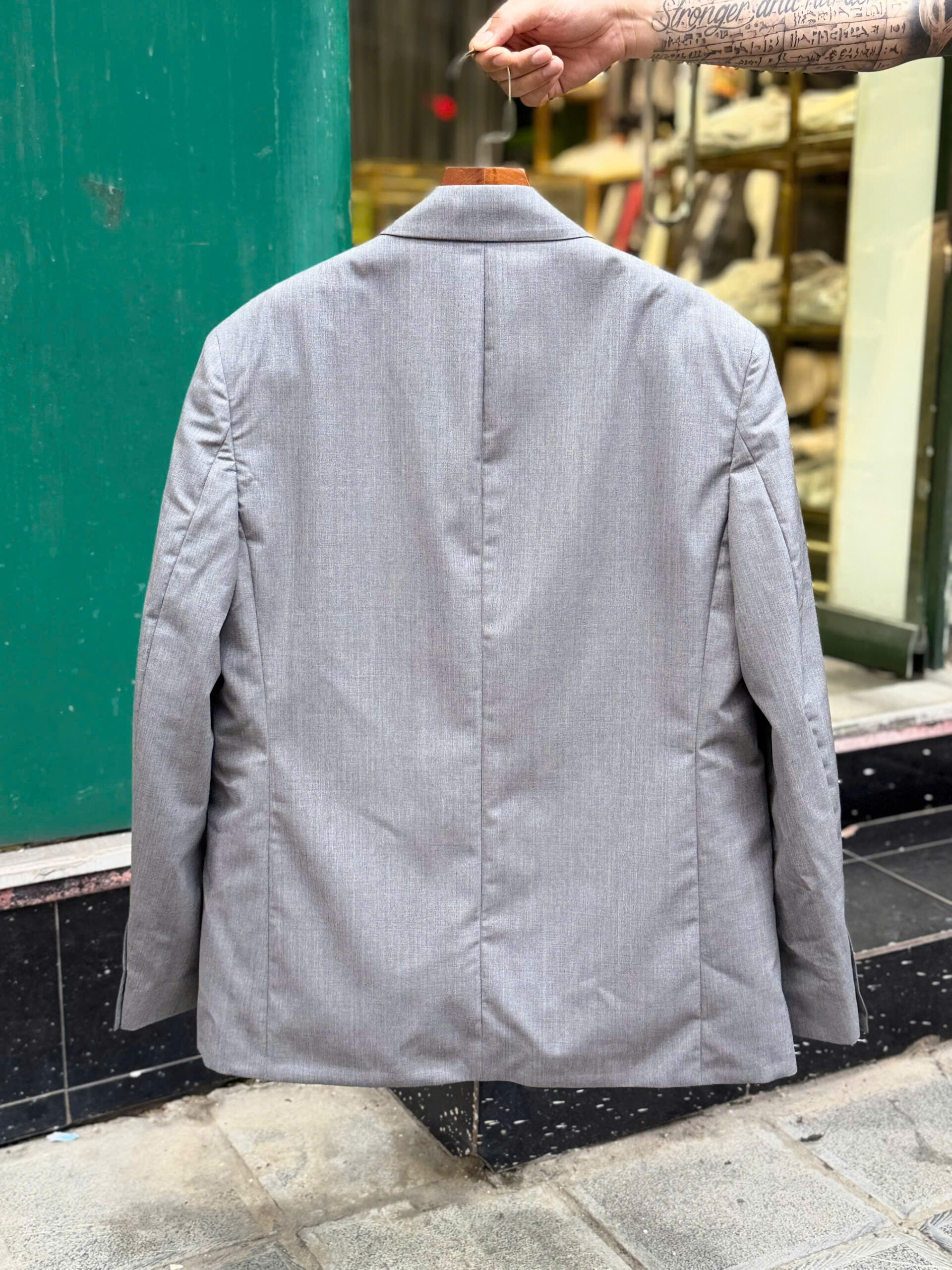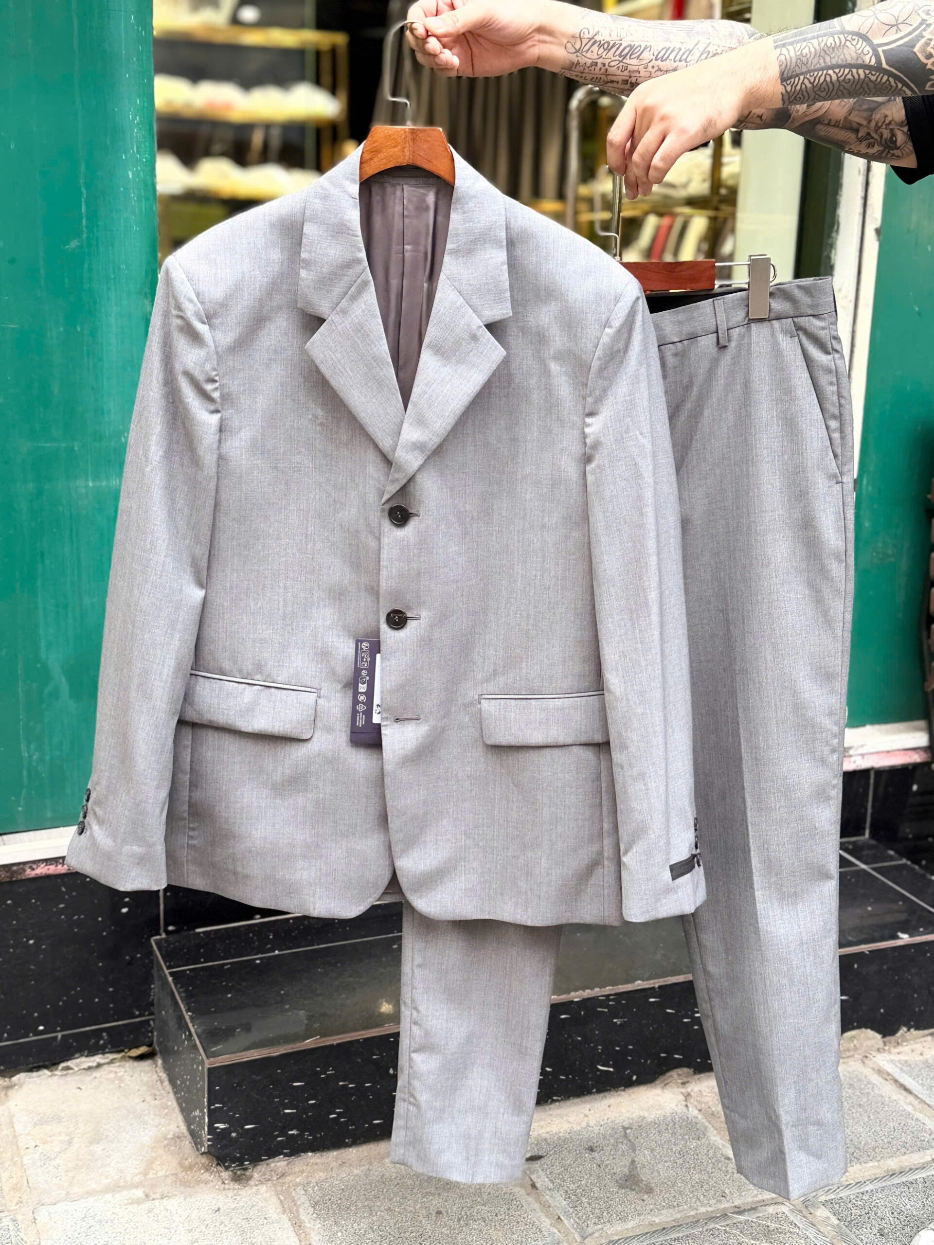 Prada suit màu ghi sáng lịch lãm, tag tay tinh tế
